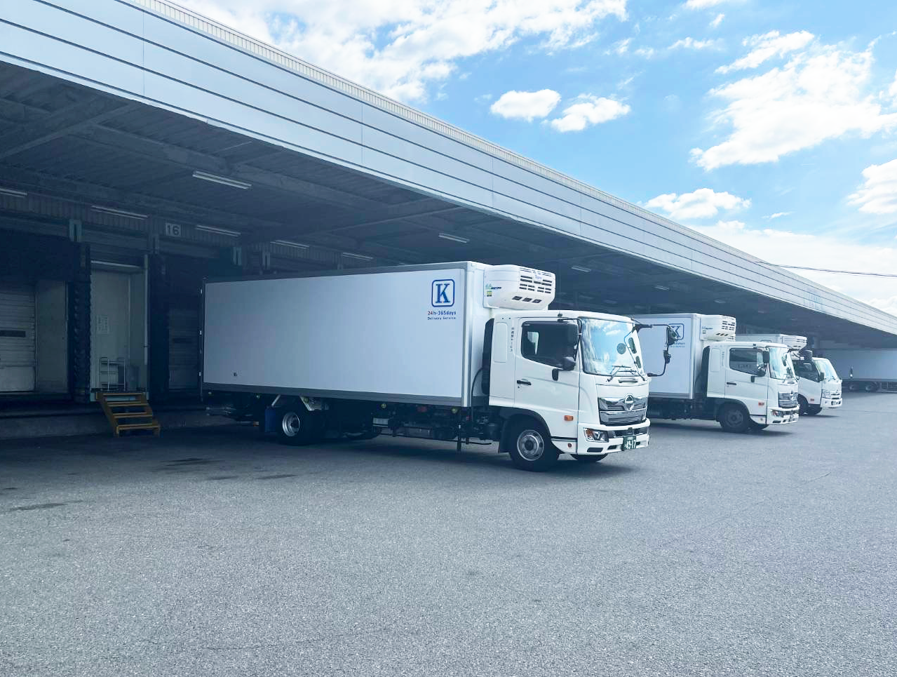 80コース以上を毎日運航する43台のトラックと、在庫型・通過型・半在庫型商品に対応する1,947㎡の物流センターで、お客様のご要望に24時間365日お応えします。